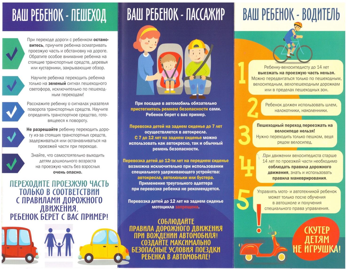 Знайте, безопасному поведению вы сможете научить ребенка собственными правильными действиями, своим личным примером.