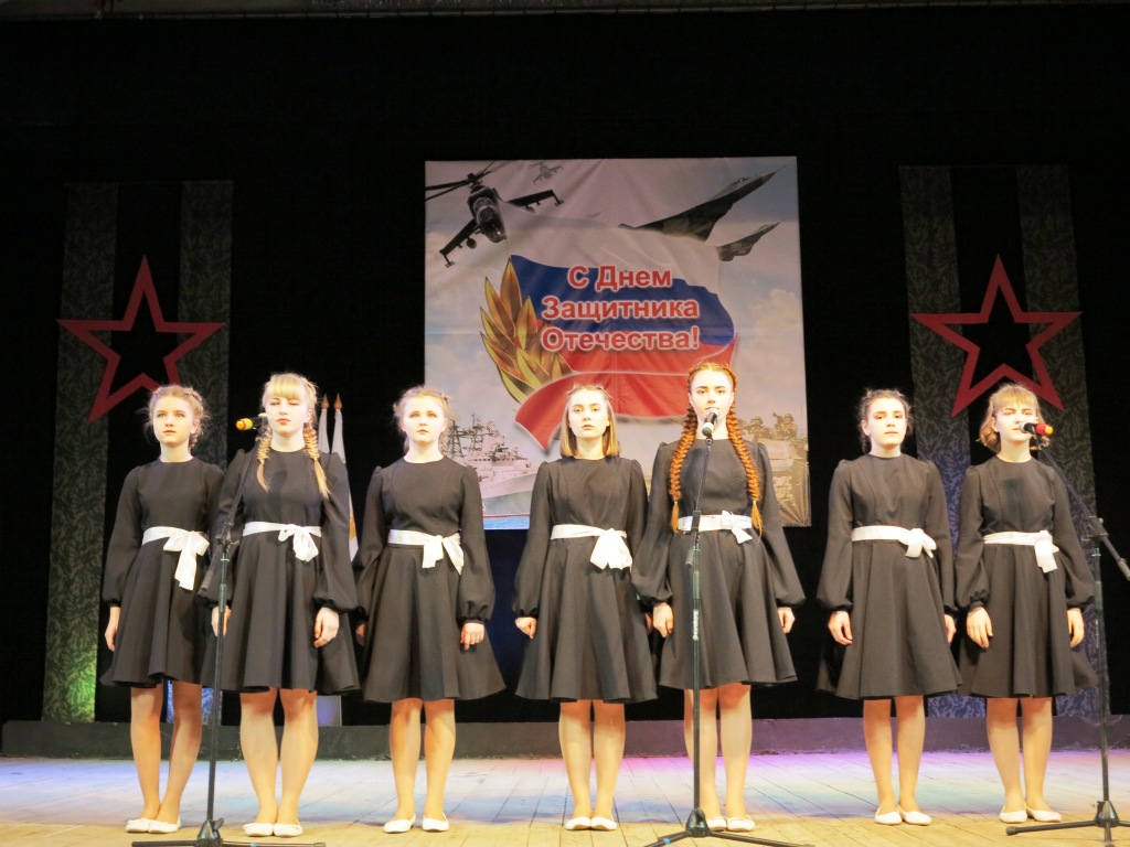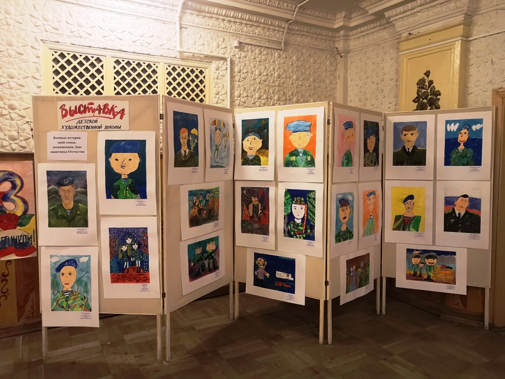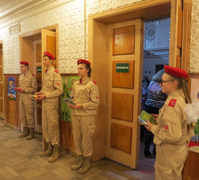 В фойе Дома культуры была организована тематическая выставка рисунков учащихся Детской художественной школы и плакатов школьников. Юнармейцы поздравляли мужчин с праздником, вручали открытки.