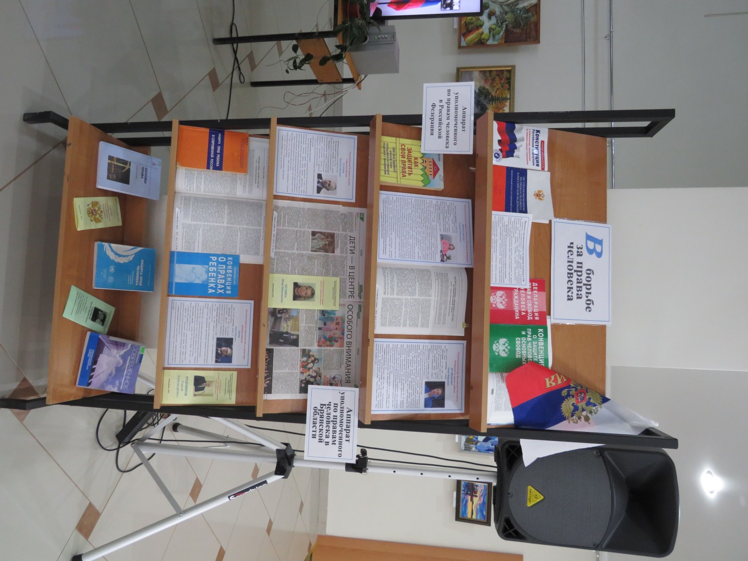 В целях дополнительного информирования для жителей и гостей округа Центр правовой информации подготовил выставку «В борьбе за права человека», где были представлены основные законодательные акты, регулирующие права и свободы человека, а так же конт