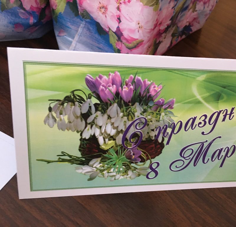 В завершении встречи женщинам вручили цветы, открытки и подарки.