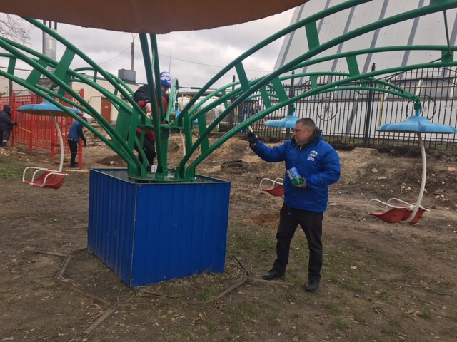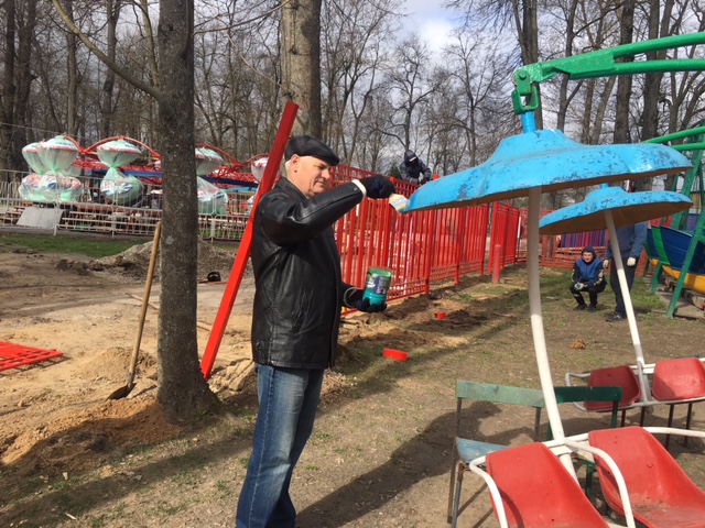 В парке был убран мусор на территориях, собран песок с обочин, окрашены качели и малые архитектурные формы. Настроения и тепла добавляло выступление народного хора ветеранов, под зажигательные песни работа шла быстрее.