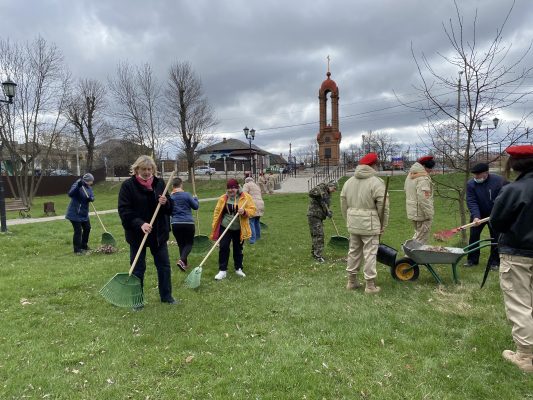 В 9.00 начался субботник в сквере Героев Отечества. Участники субботника привели в порядок не только мемориальный комплекс, но и территорию вокруг него. Активное участие в уборке приняли юнармейцы школы №1. Помимо этого, после субботника в аллее состоялось мероприятие, в ходе которого участники юнармейского движения рассказали учащимся 3-ого класса о каждом из героев, чьи бюсты расположены на аллее. Ребята почтили память земляков возложением цветов.