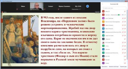28 июля, в день памяти святого равноапостольного князя Владимира и Крещения Руси, библиотекарь Афонина Н.М. на платформе ZOOM в онлайн беседе «Святой князь Владимир – Креститель Руси» рассказала о жизненном пути князя, всю жизнь искавшего истину. Его жизнь была наполнена яркими трагическими событиями. Он был убийцей брата, прелюбодеем, не знающим жалости жестоким воином. Но, по словам Святителя Николая Сербского (Велимировича), «был ночь, а превратился в день».