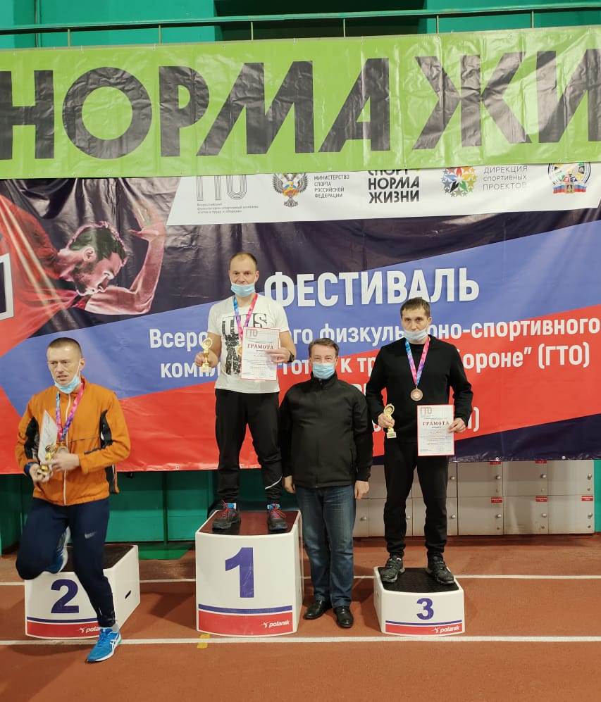 По итогам соревнований: 1 место занял Волков Александр ( 7 ступень ГТО в возрастной группе 30-39 лет), 4 место - Ханаева Ирина Григорьевна (7 ступень ГТО) и Осадчий Сергей (7 ступень ГТО).