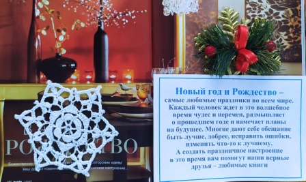 Приближается самый яркий и долгожданный праздник – Новый год. Время радости и волшебства, время сюрпризов и подарков, время удивления и восхищения. В Новогодние и Рождественские праздники особенно актуальным становится домашнее рукоделие, например, вязание крючком предметов декора для украшения дома. Из простого утилитарного ремесла вязание крючком превратилось в поистине массовое искусство. С помощью него возможно создание эксклюзивной одежды и элементов ее отделки, аксессуаров, сумок, украшений, скатертей, пледов, игрушек и предметов интерьера. Ко всему выше сказанному хочется добавить, что умение вязать, шить, делать аппликации, вышивать, плести макраме самим – своего рода медитация. Такое занятие снимает напряжение, дает возможность творчески реализоваться, а мелкая моторика полезна для создания новых нейронных связей, а значит, для хорошей памяти и настроения. "