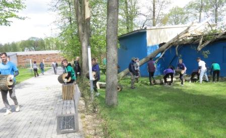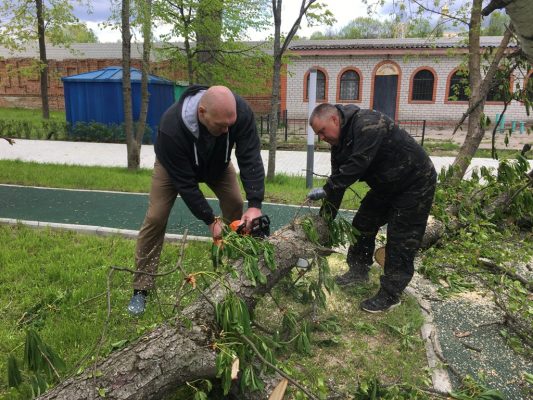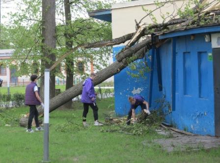 С очень популярными строчками из песни кинорежиссёра Эльдара Рязанова: «У природы нет плохой погоды…», – жители Новозыбковского городского округа, скорее всего, вчера вечером, 12 мая, поспорили бы: шквалистый ветер, дождь, поваленные деревья и разорванные линии электропередач… Но сегодня весёлое солнце осветило не только синее небо, но и возникшие проблемы. Ликвидировать их принялись дружно. К счастью, к силам МЧС, коммунальщиков, работников администрации присоединились и волонтёры, ребята из «Патриота» и других молодёжных организаций («Лукоморье», «От сердца к сердцу»). Работали дружно в городском парке, на 1 городском кладбище (ул. Красная), на старообрядческом кладбище, в детском саду № 10. А в городском парке подключился и сам Николай Валуев, депутат и чемпион. Работы по ликвидации последствий урагана в городском округе продолжаются.