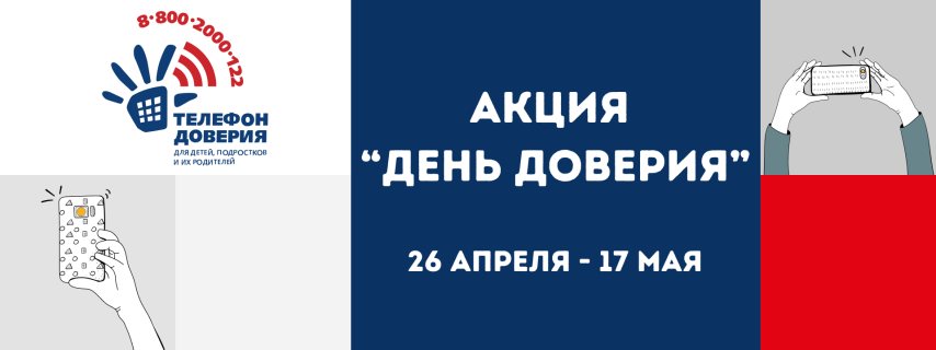 Фонд поддержки детей, находящихся в трудной жизненной ситуации, запускает масштабную акцию «День доверия», в которой примут участие известные психологи и педагоги, представители шоу-бизнеса и популярные блогеры. Проект приурочен к Международного дню детского телефона доверия, который ежегодно отмечается 17 мая, и направлен на продвижение Общероссийского детского телефона доверия 8-800-2000-122.