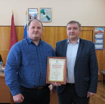 Почетную грамоту в торжественной обстановке Григорию Дмитриевичу вручил первый заместитель главы Новозыбковской городской администрации Шевелев Виктор Григорьевич.