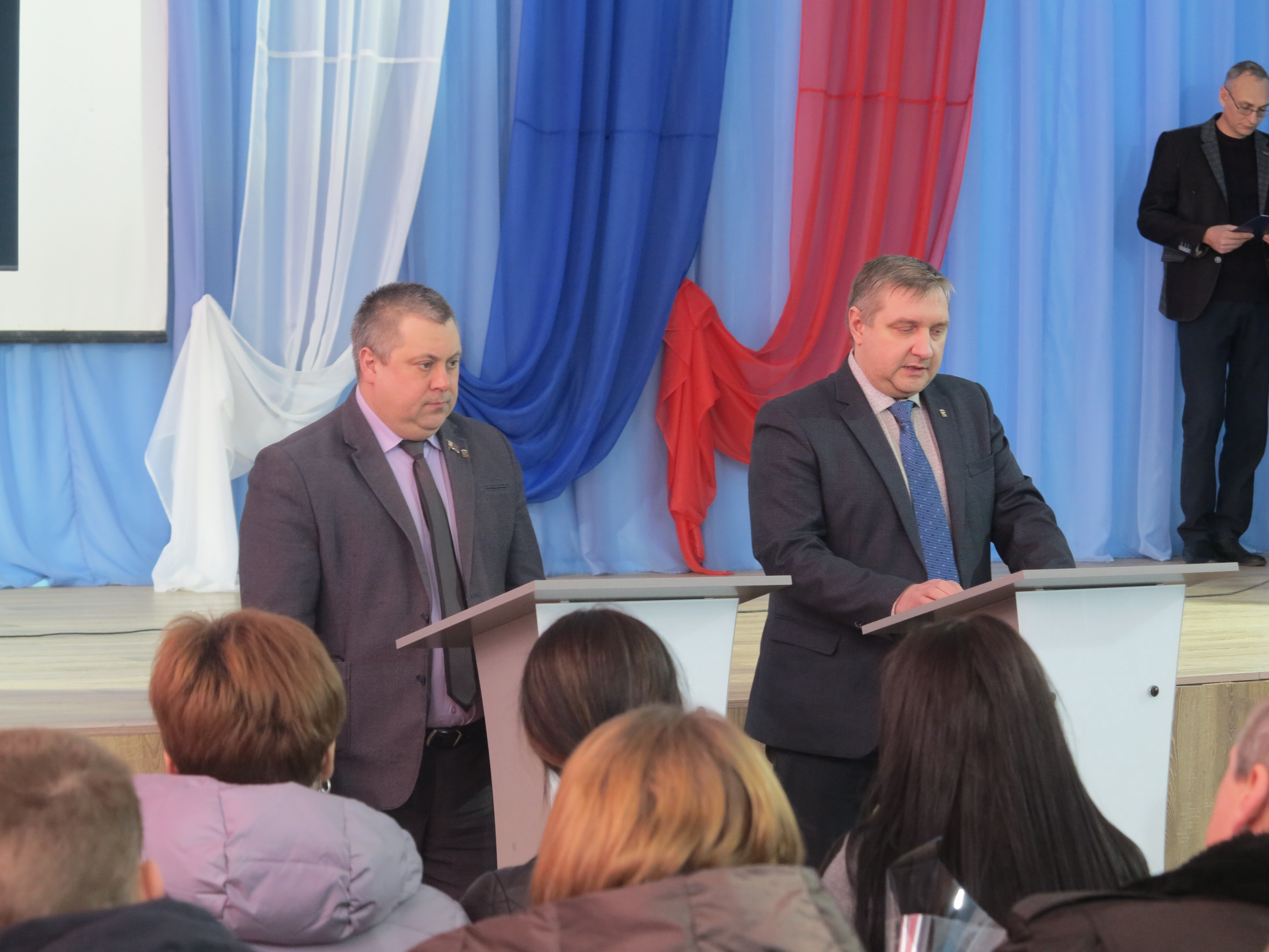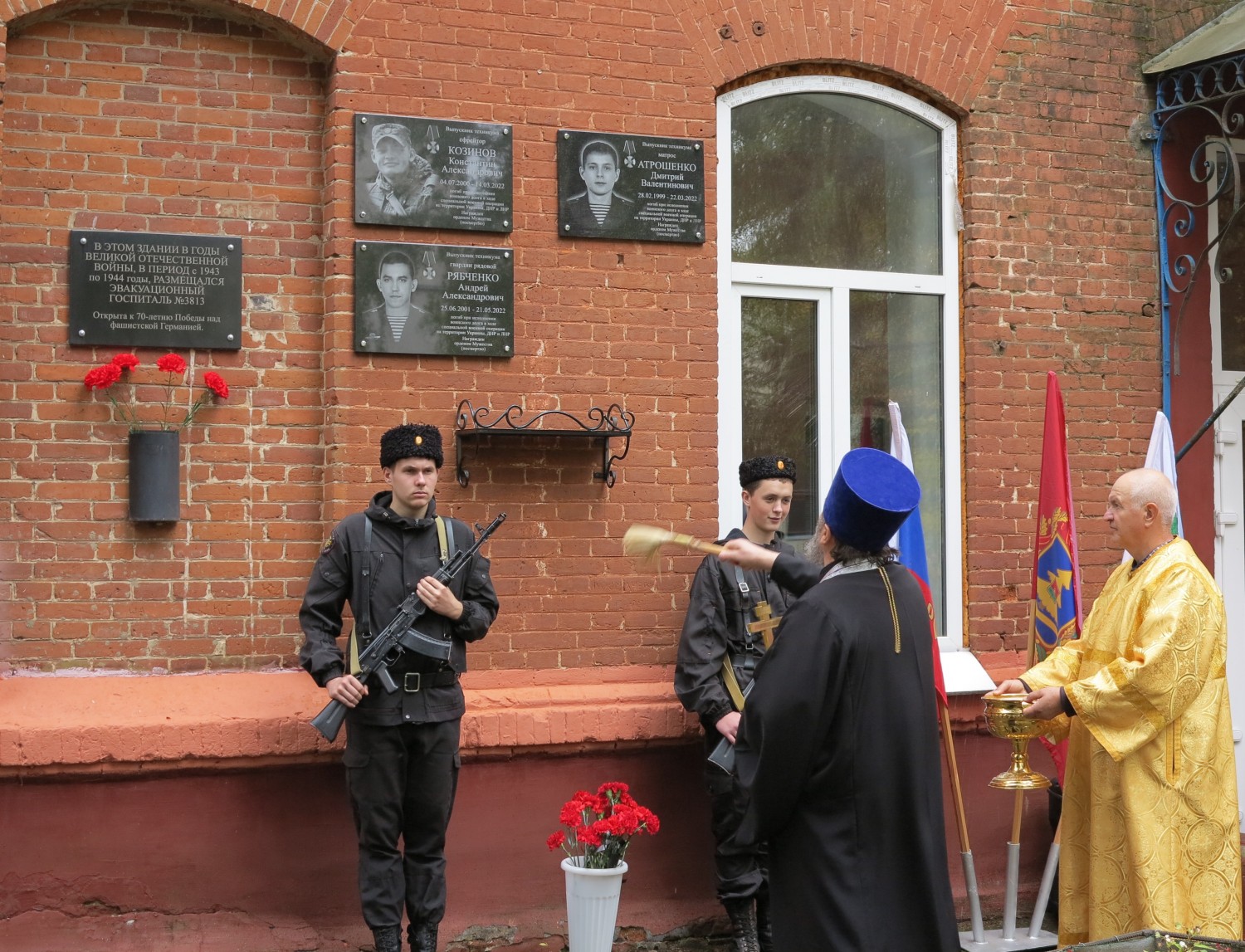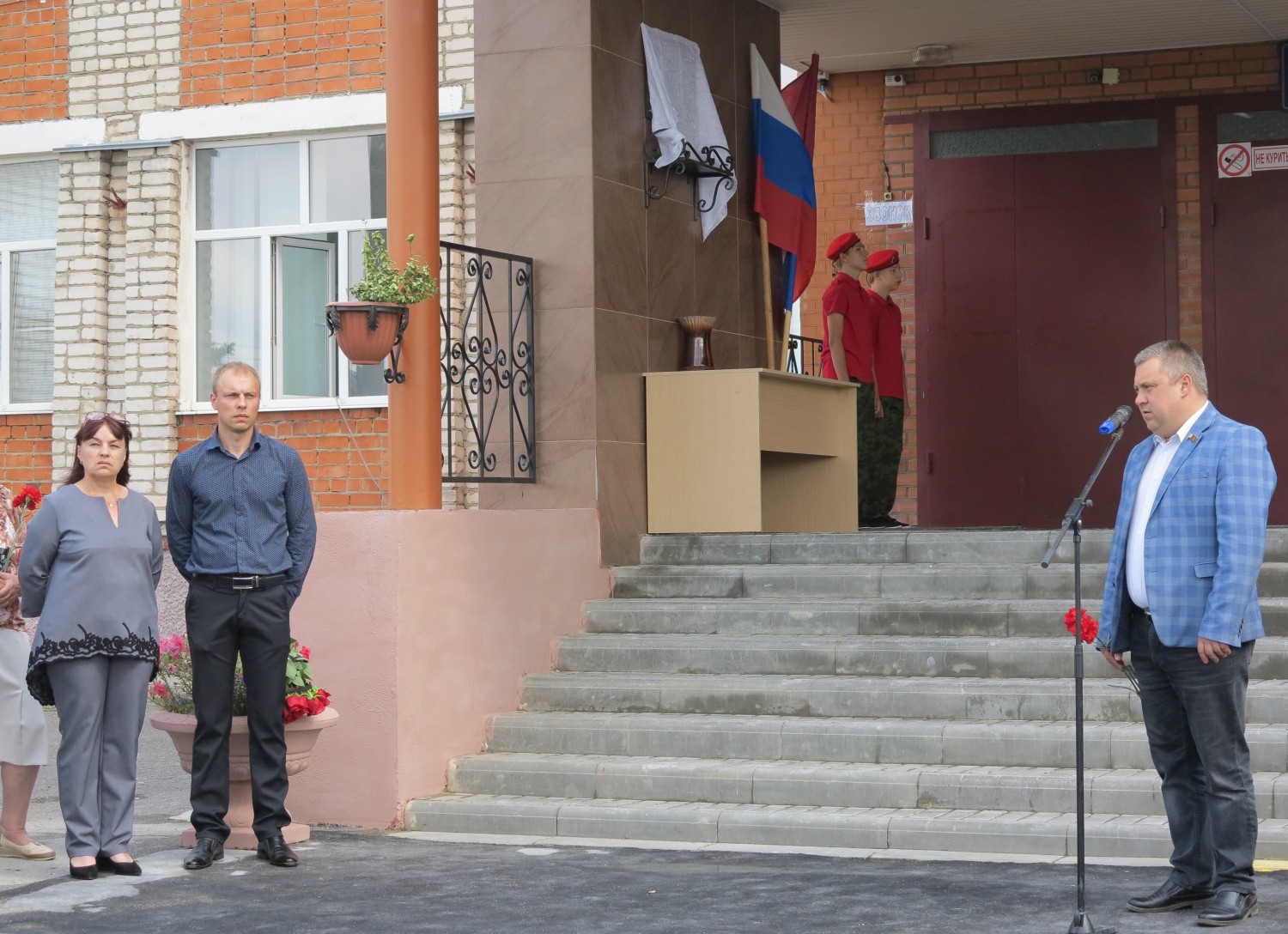Глава администрации А.В. Юрлов сказал, что 6 мужчин, которые не вернулись с полей военной операции, – боль и скорбь и наша задача – их помнить, для этого и собрались здесь. «Но сегодня особенный день, – добавил Александр Викторович, – увековечивание троих живых героев, двое из которых присутствуют лично, это важно для нас благодарить тех, кто пролил кровь за мирное небо над нами»."