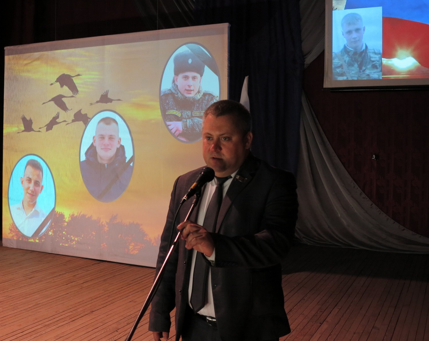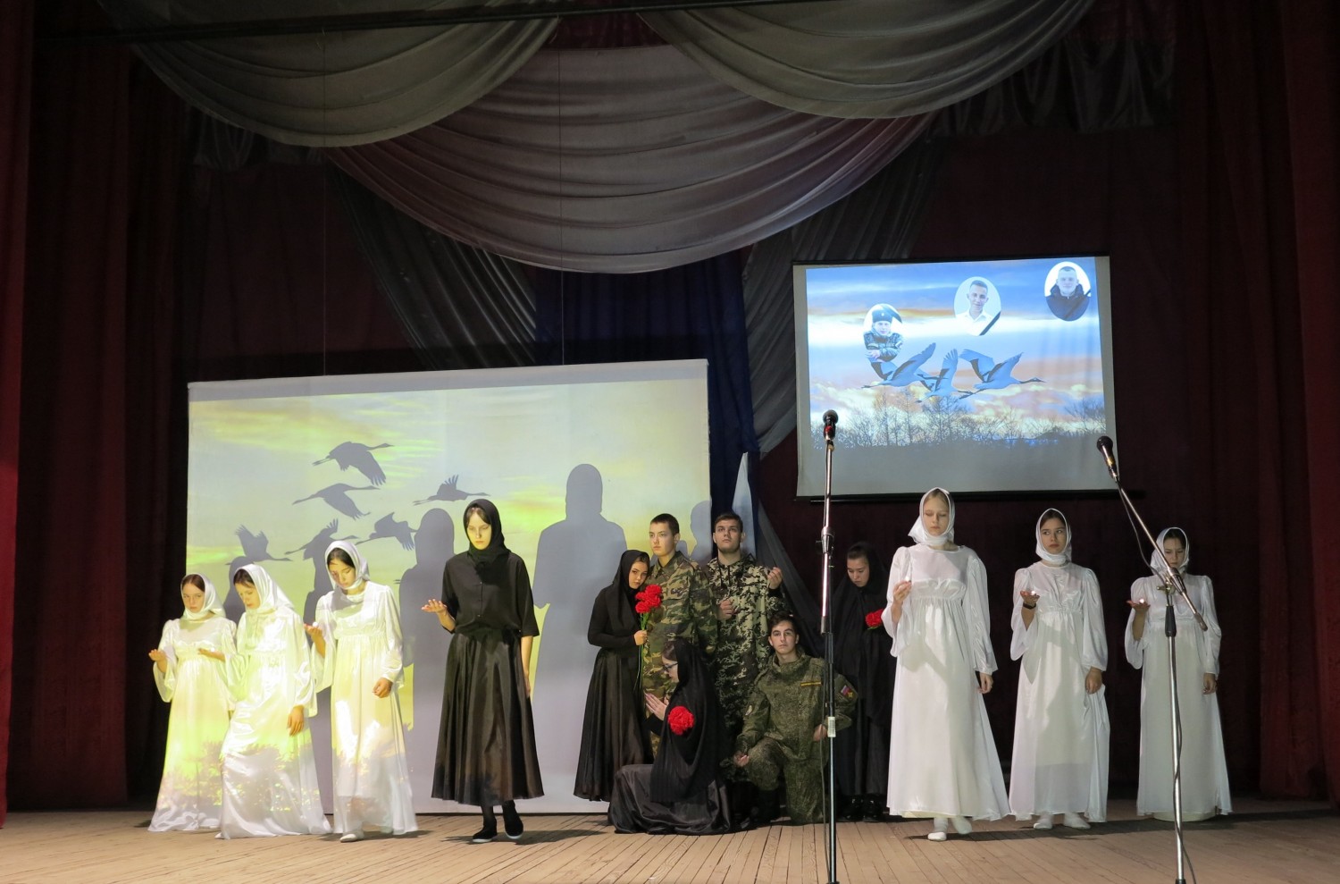 Музыкальный пролог песни «Журавли» на стихи Расула Гамзатова проникновенно исполнил Роман Святохо.