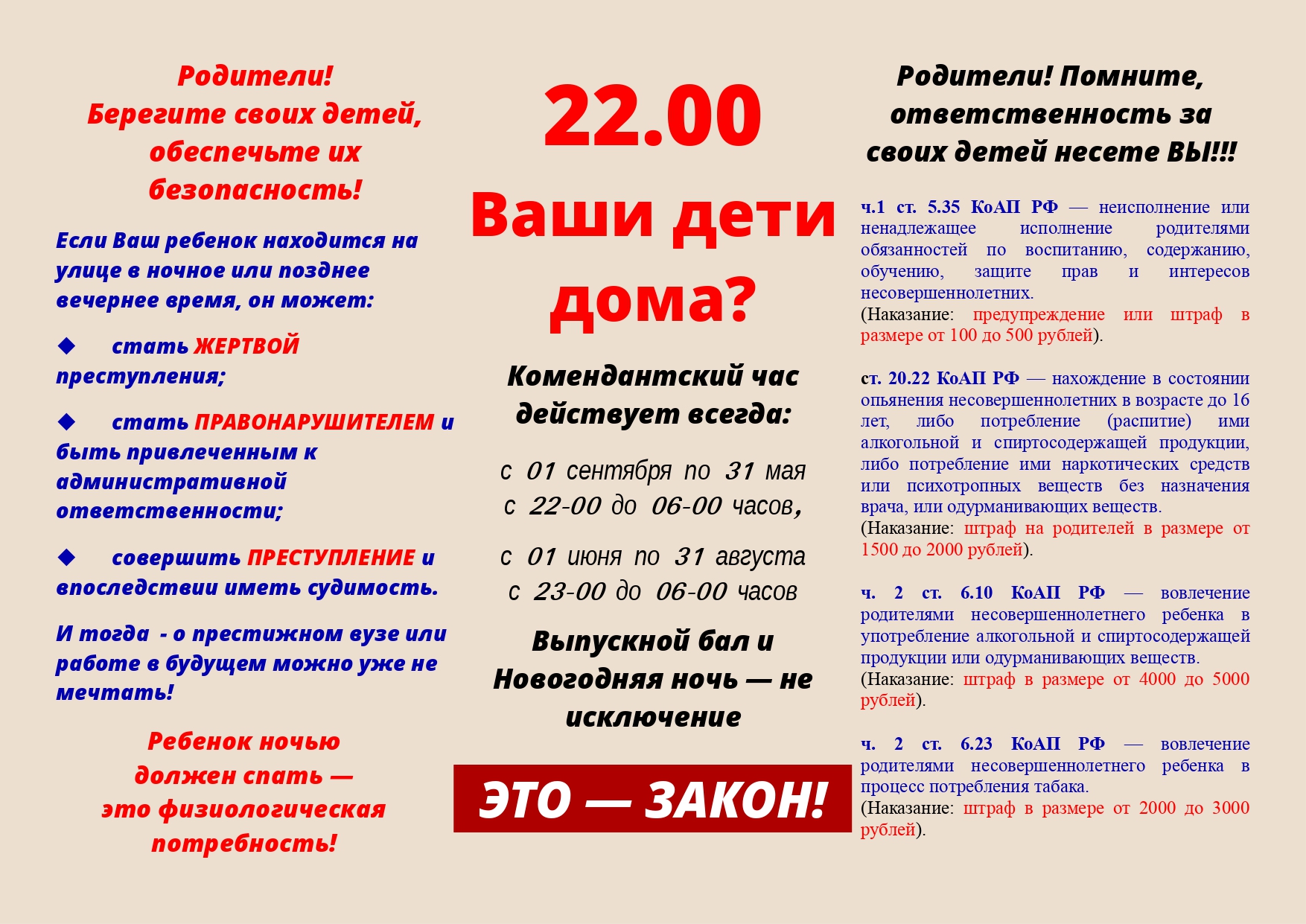 Комиссия по делам несовершеннолетних и защите их прав информирует о том, что вовлечение несовершеннолетних в преступные и антиобщественные деяния влечет уголовную или административную ответственность для взрослых лиц, достигших 18 лет.