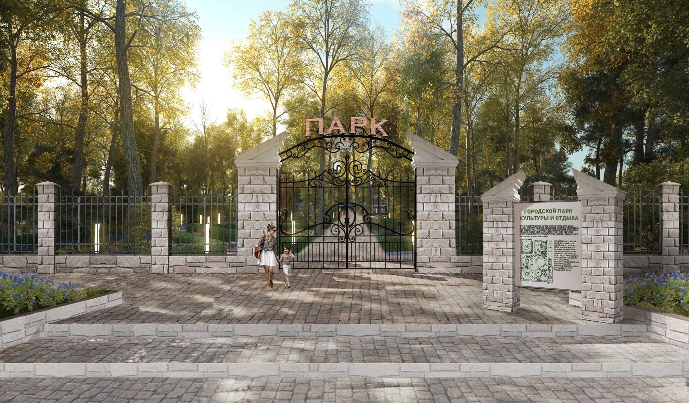 Для предметного обсуждений были представлены 2 фрагмента благоустройства аллей парка в современном стиле, подготовленные на данный момент проектировщиками.