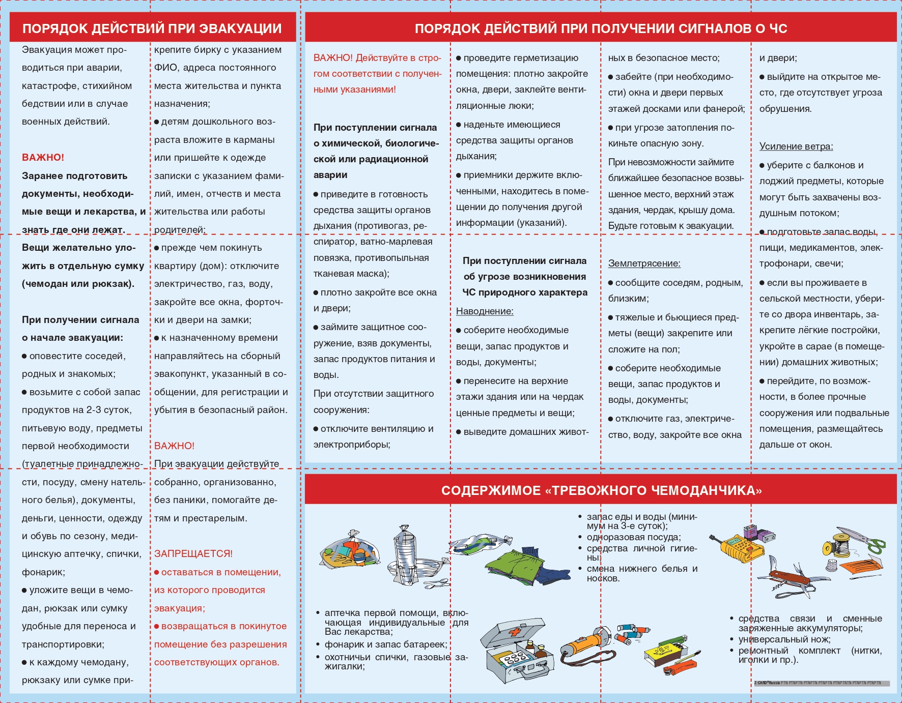 «Тревожный набор» должен храниться в рюкзаках или сумках, которые могут быть распределены для переноски между членами семьи. Раз в год «тревожный набор» проверяется и обновляется.