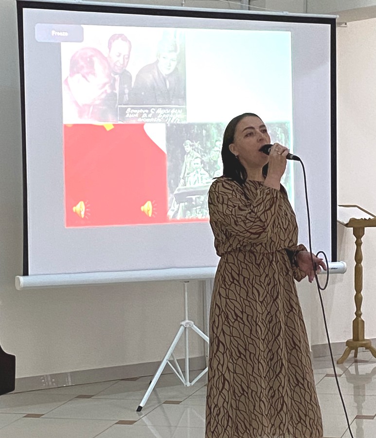Замечательно выступил хор ветеранов под руководством А.Н. Байдракова. Это были любимые песни комсомольцев, и они тронули сердца собравшихся на мероприятии. Прекрасно выступила Надежда Смирнова, песни из репертуара Анны Герман в её исполнении покорили присутствующих, все подпевали… Завершилось мероприятие словами благодарности организаторам и фото на память. |