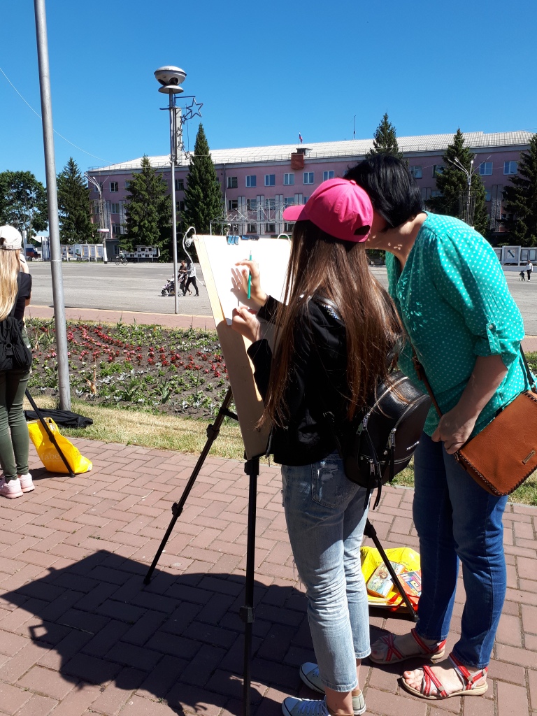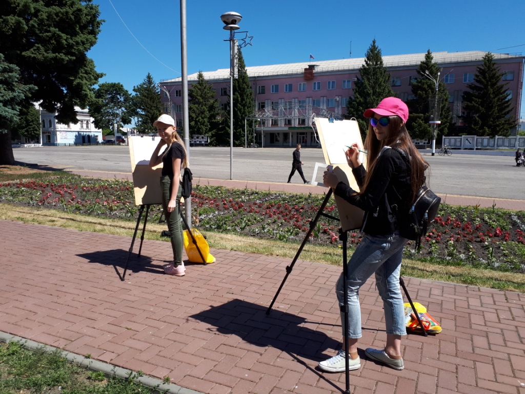 Обучающиеся Детской художественной школы вместе со своими педагогами в этот день провели пленэр в центре города под девизом "Здравствуй лето!&quo