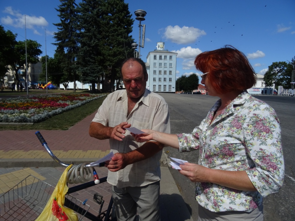 В Новозыбкове прошли мероприятия, приуроченные Дню Государственного флага России. Сотрудниками центральной городской библиотеки была проведена информационная акция «Флаг в истории страны». Жителям и гостям города из Мурманска, Урала, Магадана и республики Беларусь самых разных возрастов вручались информационные листовки с краткой историей этого события, а также памятные ленточки в цветах Российского флага. Люди с благодарностью и улыбками принимали поздравления.