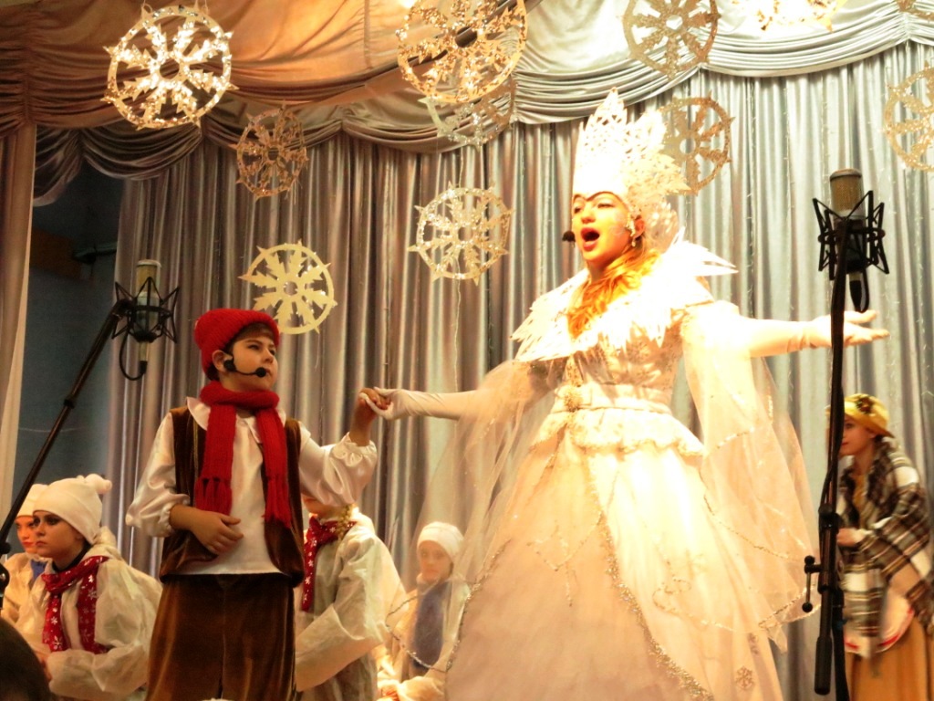 Со словами поздравлений к присутствующим обратился глава администрации города Александр Юрьевич Чебыкин. Продолжилось мероприятие новогодним представлением «Снежная королева», подготовленным Образцовым детским музыкальным театром «Синяя птица» Детской музыкальной школы.