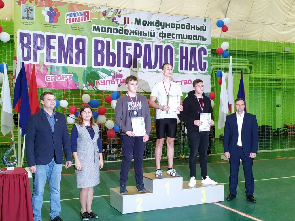 13 октября в г.Стародуб прошёл 2-й Международный молодёжный фестиваль «Время выбрало нас». В соревнованиях по 12 дисциплинам: стрельбе из пневматической винтовки, дартсе, армрестлинге, русским шашкам, спортивной эстафете, туристической викторине, толчке и рывке гирь, подъёме бревна весом 50 кг, переносе 2-х чемоданов весом по 60 кг, прыжках на скакалке, подтягивании на перекладине, приняли участие ребята из Клинцов, Стародуба, Новозыбкова, Брянского, Выгоничского, Стародубского, Суземского, Почепского, Красногорского районов и п.Климово.