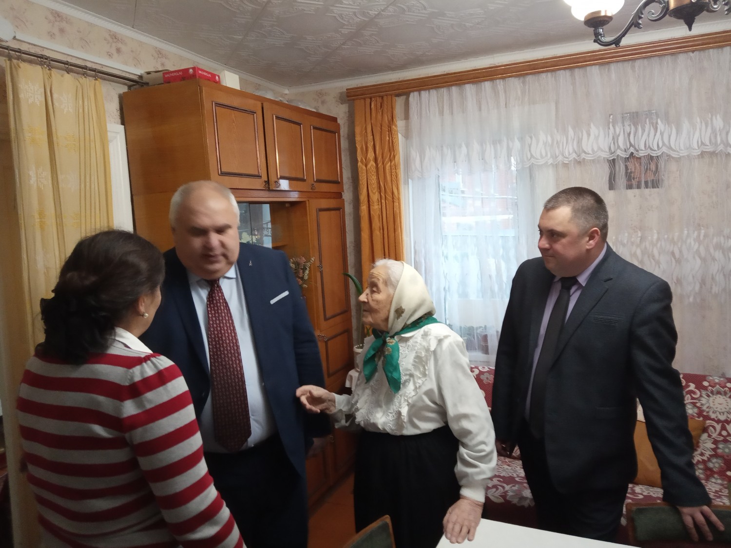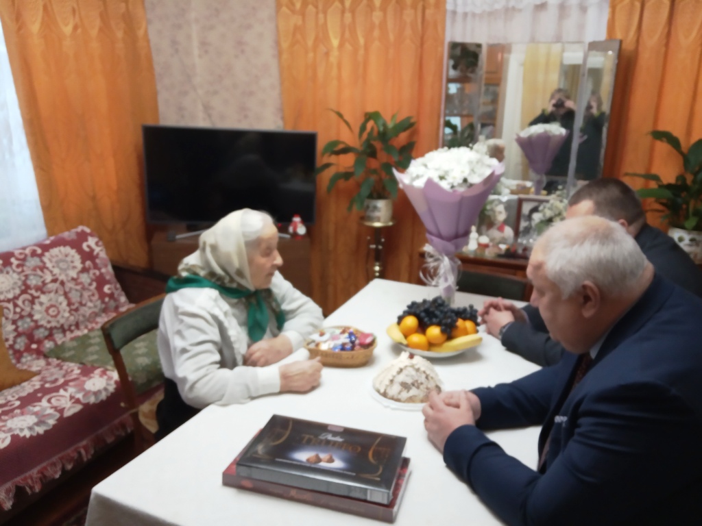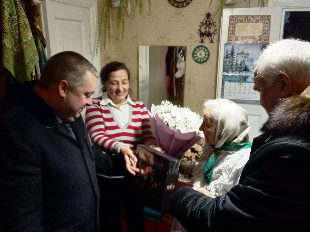 Глава Новозыбковской городской администрации Павел Викторович Разумный и глава Новозыбковского городского округа Александр Владимирович Щипакин поблагодарили Анну Андреевну за большую общественную работу и вручили ей поздравление от Губернатора Брянской области Александра Васильевича Богомаза, а также от себя - памятный адрес, цветы и подарок.