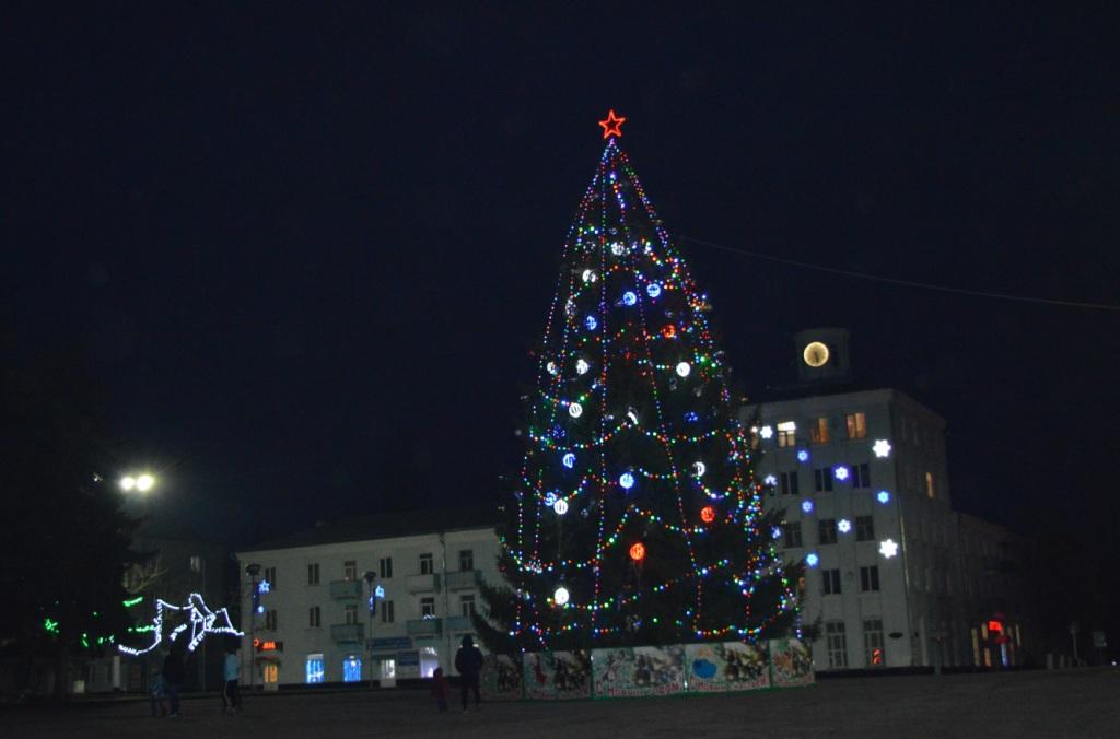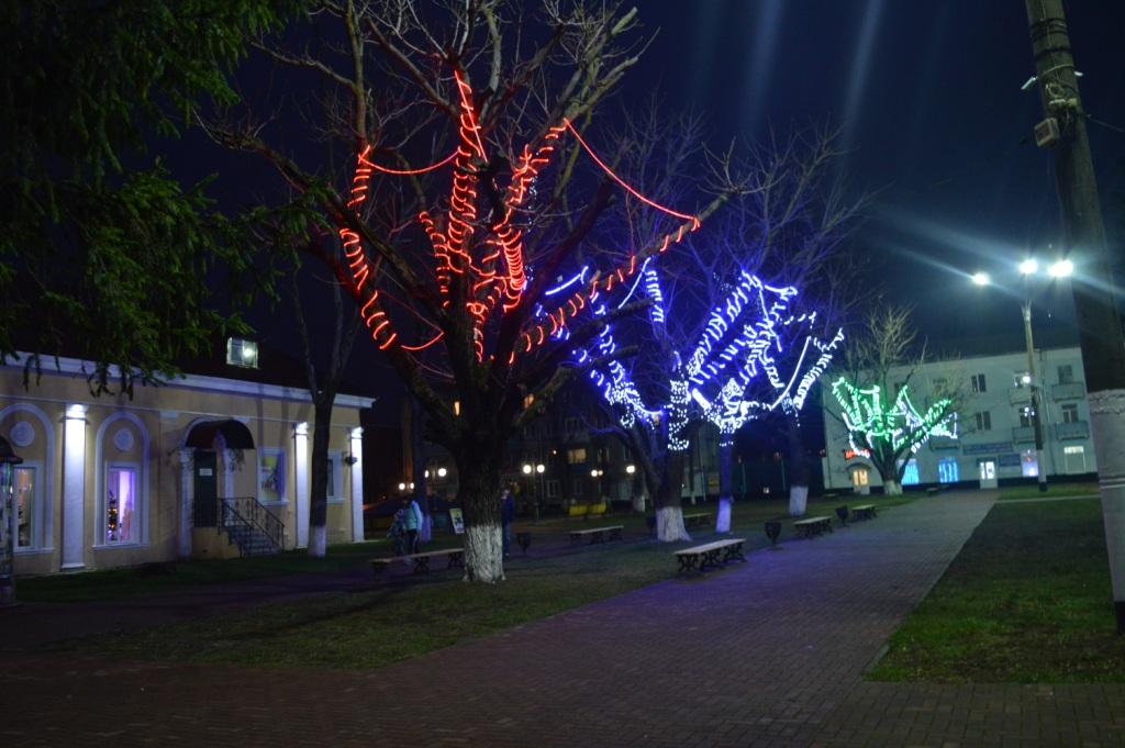 На пл.Октябрьской революции установлена праздничная ель. Организовано праздничное убранство центральной площади города и прилегающих улиц. Подключены электрические гирлянды и консоли, расположенные по улицам Ленина, Коммунистическая, Кубановская, Комсомольская, а также гирлянды, светотехническое оборудование, используемое для украшения пл. Октябрьской революции.