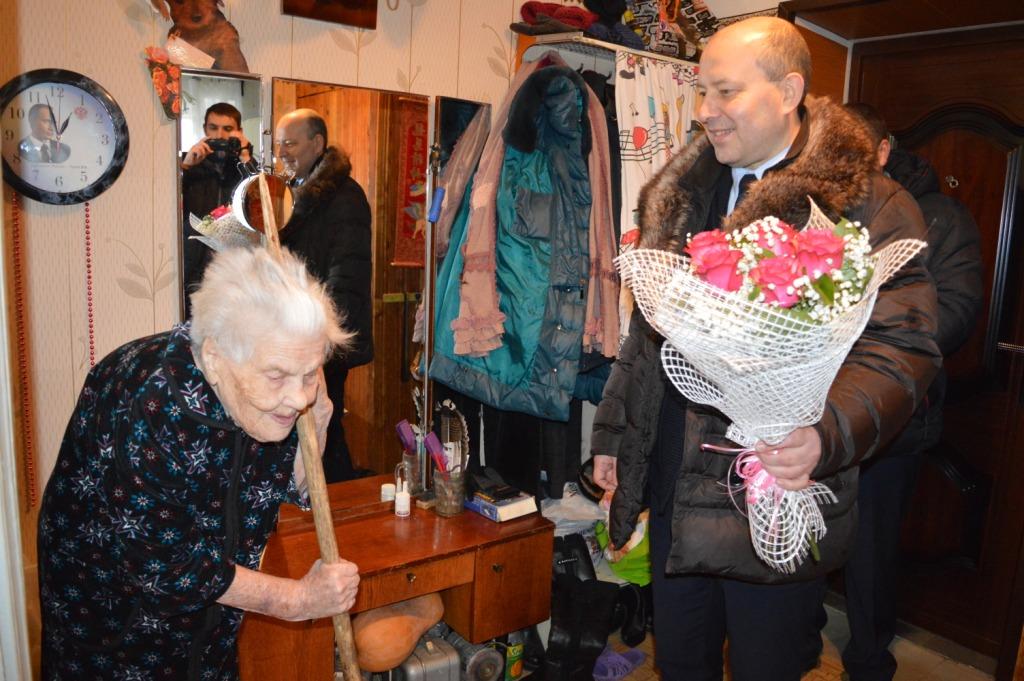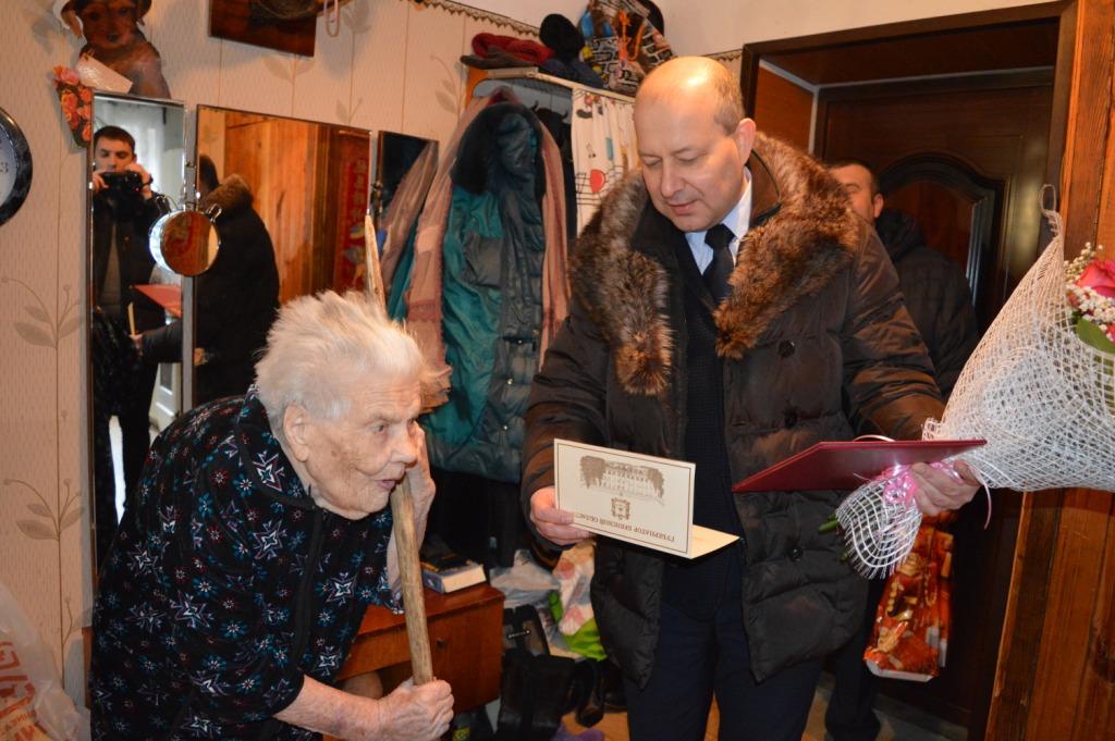 Жительнице Новозыбковского городского округа Марии Ивановне Соловьёвой сегодня исполнилось сто лет. Поздравить юбиляра приехали представители городской администрации. Заместитель главы администрации Андрей Васильевич Небылица вручил Марии Ивановне цветы и подарки, зачитал поздравление от Губернатора Брянской области Александра Васильевича Богомаза, главы Новозыбковской городской администрации Павла Викторовича Разумного и главы Новозыбковского городского округа Александра Владимировича Щипакина.