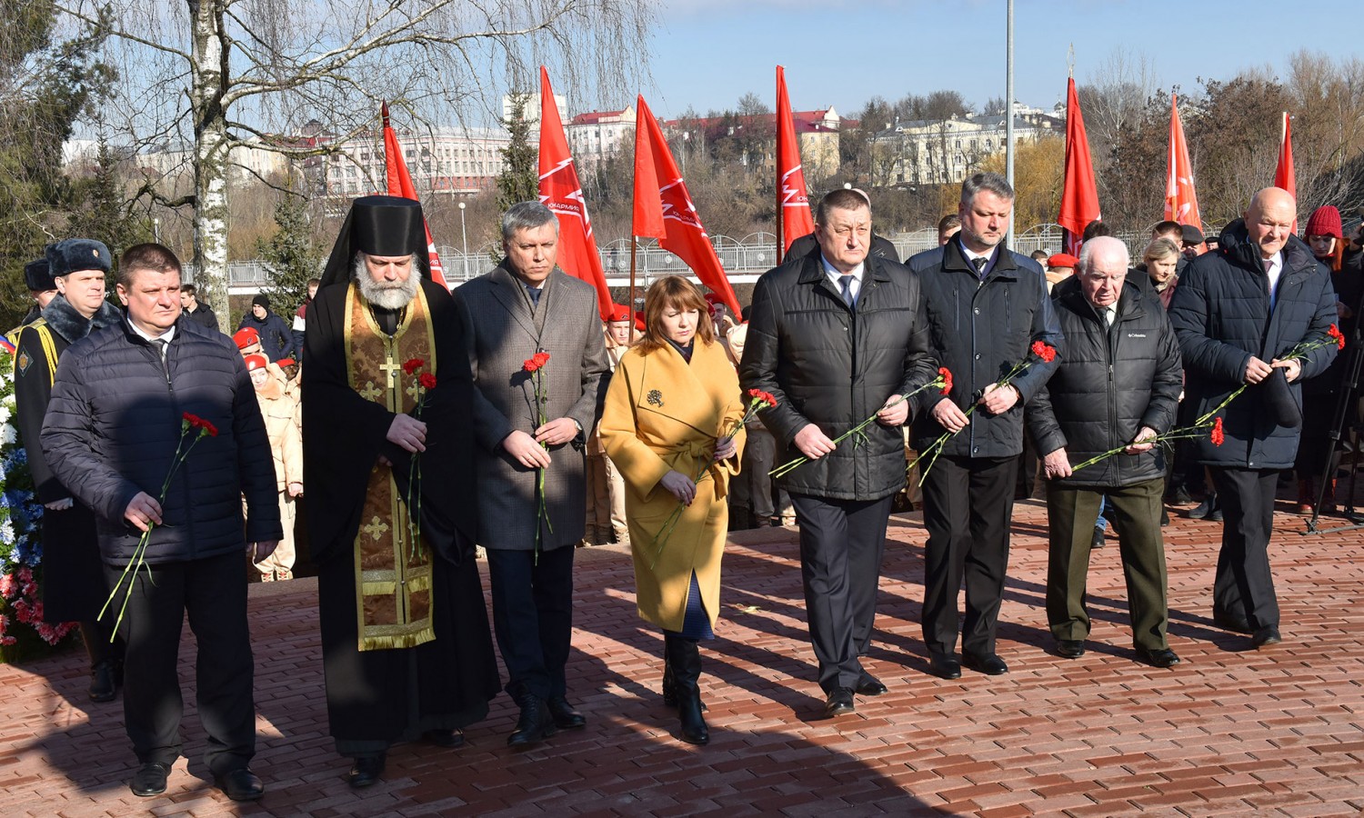 В знак памяти и славы павшим воинам корзину цветов и цветы к памятнику «Круговая оборона» возложили исполняющий обязанности Губернатора Брянской области Александр Резунов, исполняющий обязанности председателя Брянской областной Думы Владимир Пронин, главный федеральный инспектор по Брянской области Андрей Дьячук, член Совета Федерации Федерального Собрания Российской Федерации Галина Солодун, первый заместитель председателя Комитета Государственной Думы по экологии и охране окружающей среды Николай Валуев, Герой Советского Союза Иван Кашин, Герой Российской Федерации Александр Постоялко, член генерального совета Деловой России, сопредседатель Московского регионального отделения Деловой России Андрей Павлов, председатель Ассоциации военно-патриотических клубов ДОСААФ России Андрей Тимофеев, куратор Всероссийского проекта по установке бюстов бойцам 6-й роты, 20-летию подвига в Аргунском ущелье Елена Беликова, заместитель директора департамента организационно-уставной деятельности ДОСААФ России Виталий Чухиль, заведующий отделом по взаимодействию церкви и общества Брянской Епархии, иеромонах Ко