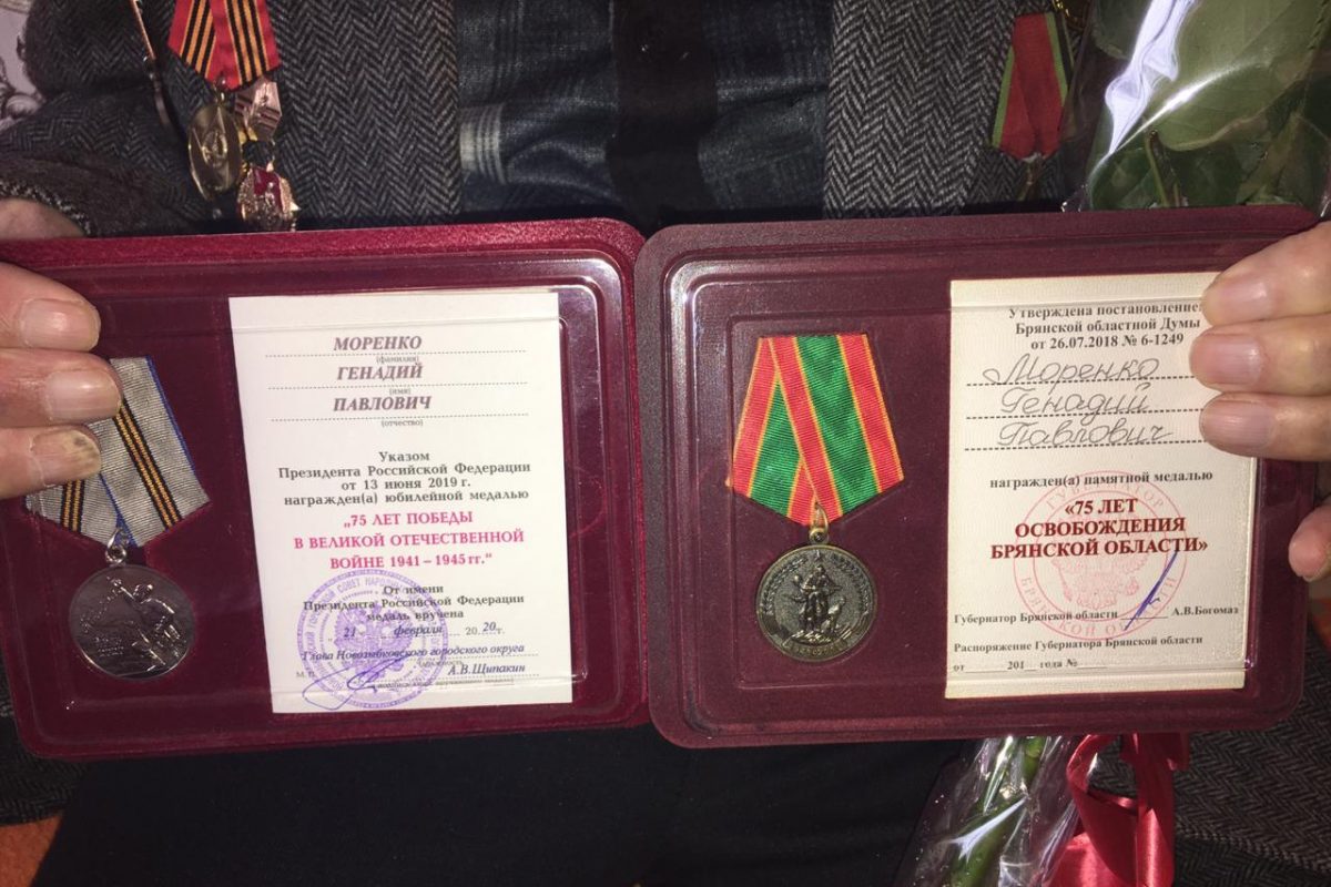 Генадию Павловичу вручили юбилейную медаль «75 лет Победы в Великой Отечественной войне 1941-1945 гг.» и памятную медаль «75 лет освобождения Брянской области».