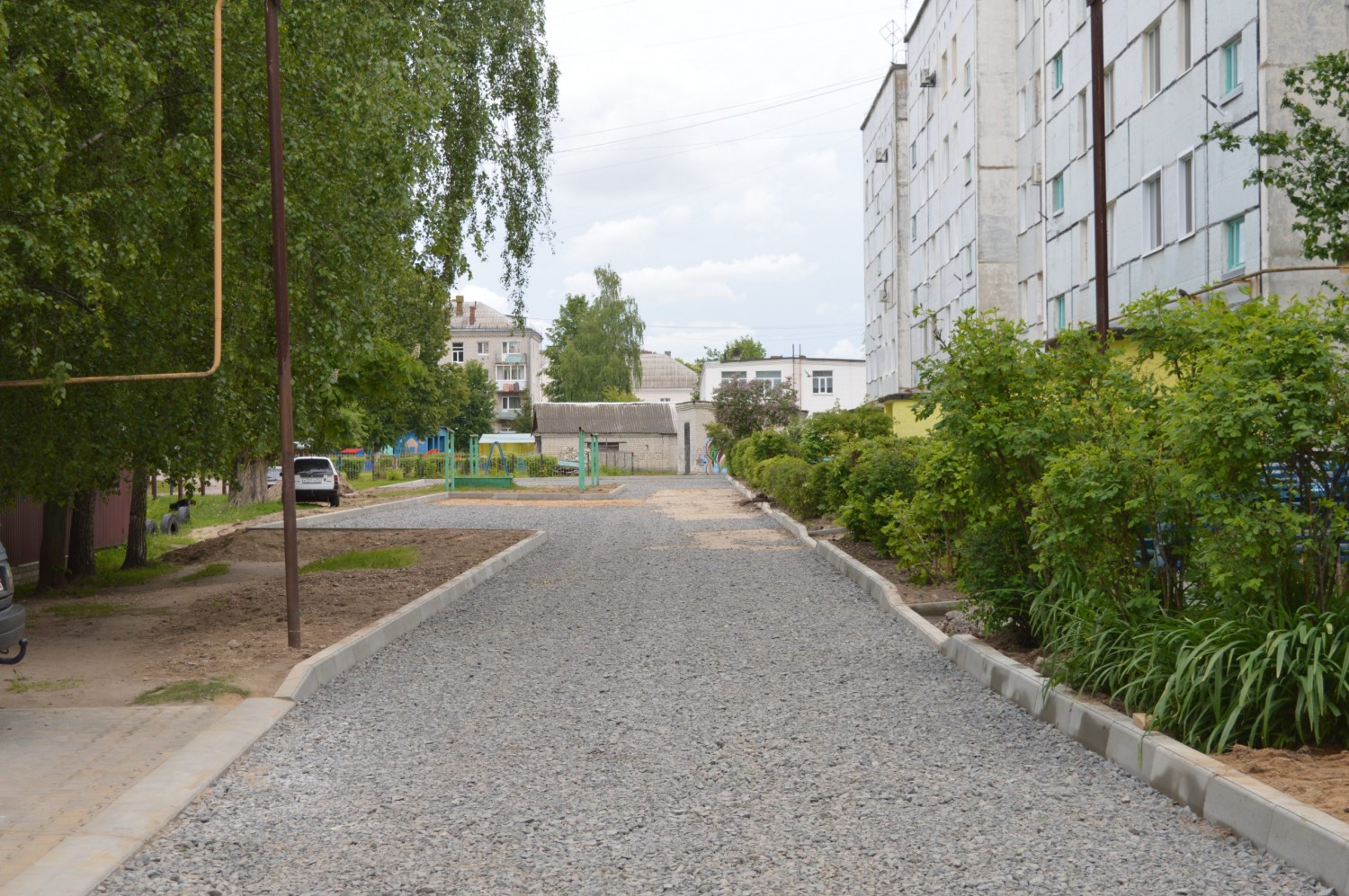 Готова для асфальтирования и проезжая часть во дворе дома №16А по Ломоносова. В МКП «Благоустройство» уточняют, что укладка асфальтовой смеси требует необходимых погодных условий, и будет проведена в ближайшее время.