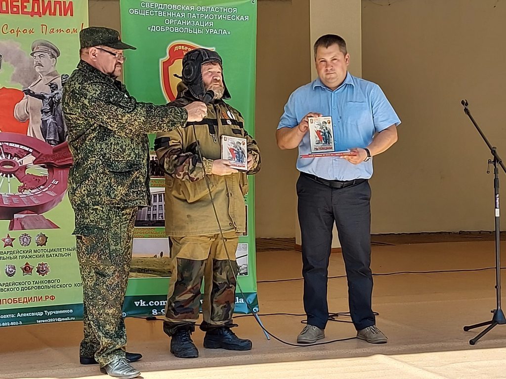 Сегодня в 12.00 в городском парке культуры и отдыха состоялась демонстрация передвижной фотовыставки о боевом пути 7-ого гвардейского отдельного разведывательного мотоциклетного Пражского батальона 10 гв.танкового Уральско-Львовского добровольческого корпуса. Инициаторами выставки выступили РОО «Ветераны военной контрразведки» по Свердловской области совместно со Свердловской общественной организацией «Добровольцы Урала» при поддержке Фонда президентских грантов.