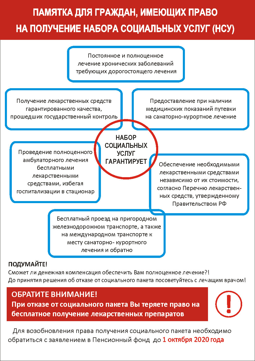 Другим Федеральным законом о государственной социальной помощи предусмотрено право гражданина, имеющего право на получение социальных услуг, отказаться от набора социальных услуг в пользу получения денежного эквивалента. Для этого достаточно единожды подать заявление об отказе от льгот в натуральном виде (получение лекарств, бесплатный проезд и т.д.).