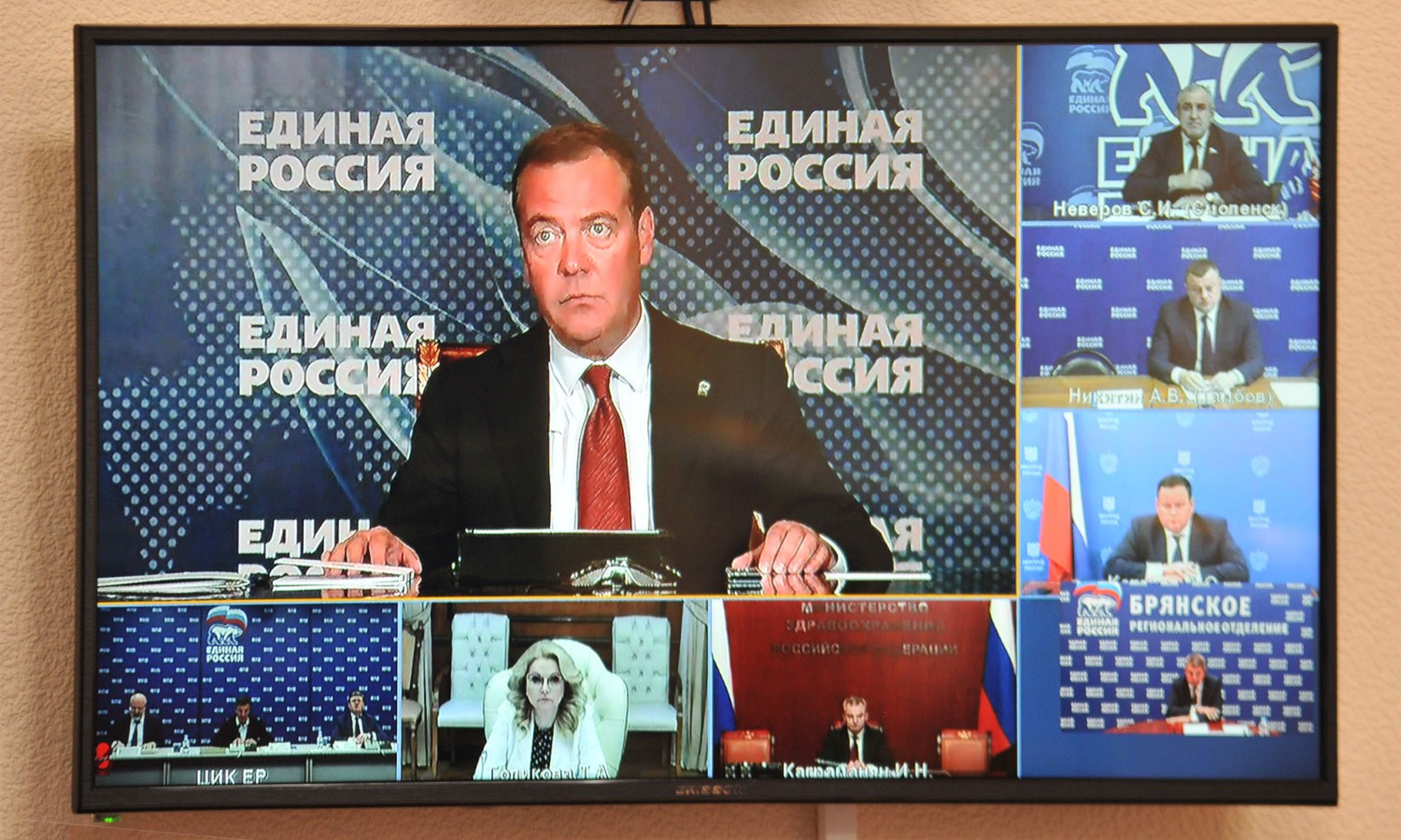 Заместитель председателя Совета Безопасности РФ, Председатель партии «Единая Россия» Дмитрий Медведев в режиме видеоконференцсвязи провел рабочее совещание, в котором принял участие Губернатор Брянской области Александр Богомаз.
