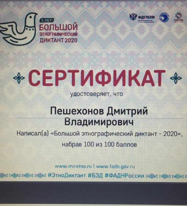Жители Новозыбковского городского округа активно включились в просветительскую акцию. В течение первых двух дней в юбилейном Диктанте уже приняли участие более 270 человек. Участниками диктанта стали школьники и студенты, учителя и воспитатели, руководители школ и детских садов. Участники Большого этнографического диктанта в онлайн формате отвечали на вопросы о национальных традициях, праздниках и кухне народов России, знаменитых полководцах периода Великой Отечественной войны и древних племенах, населявших территорию Брянщины. Всего нужно было ответить на тридцать вопросов, двадцать из которых были «общероссийскими», а десять - «региональными».