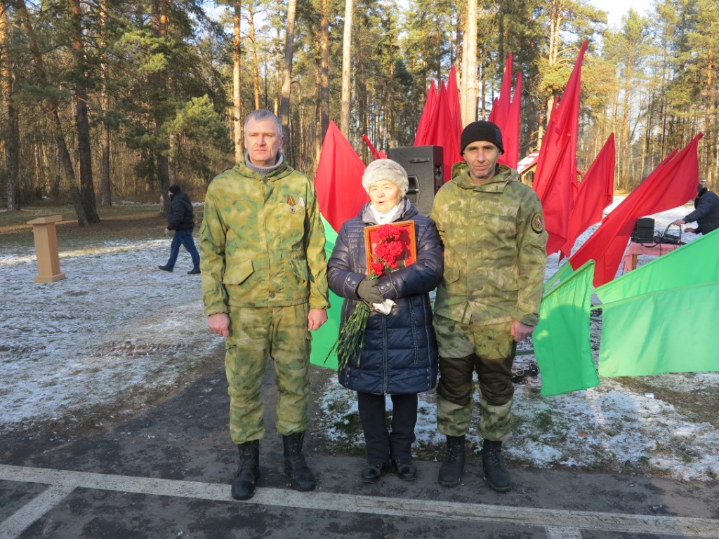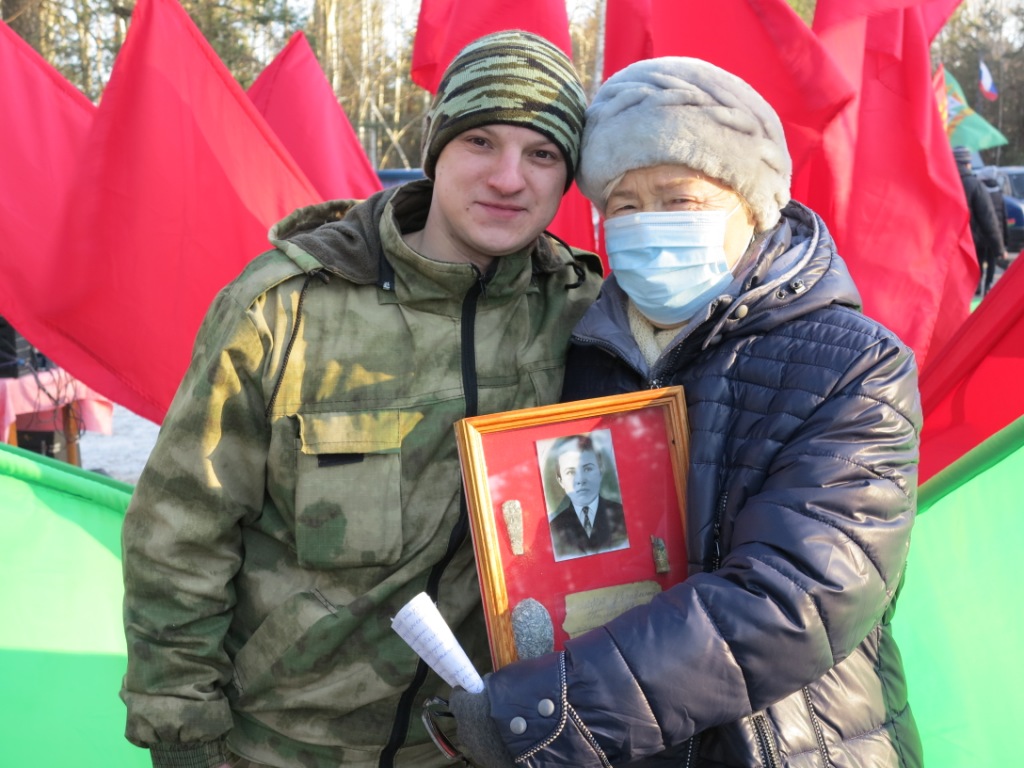 На нулевом километре между российско-белорусской границей прошла памятная церемония передачи останков. Здесь собрались поисковики, представители Брянского правительства и Гомельского облисполкома, Новозыбковской администрации. Приехала племянница погибшего воина Любовь Мельникова.