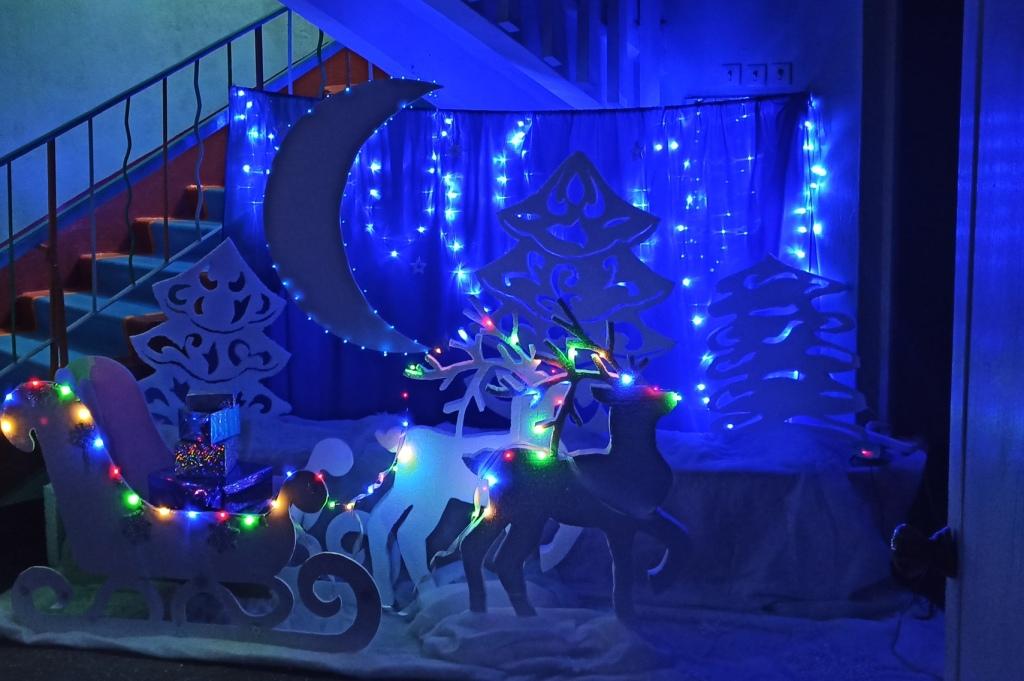 Коллективы школ и детских садов проделали большую работу по созданию праздничной атмосферы в своих учреждениях. Украшены не только фасады и территории, но и классы в школах, групповые ячейки в детских садах, организованы новогодние выставки поделок, новогодних газет.