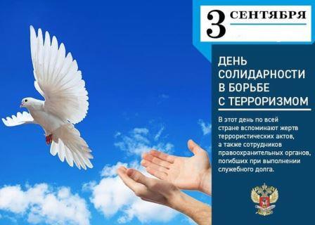 3 сентября в России ежегодно отмечается День солидарности в борьбе с терроризмом. Эта памятная дата неразрывно связана с трагическими событиями, произошедшими в Беслане 1-3 сентября 2004 года, когда боевики захватили одну из городских школ и в течение 3-х дней удерживали в заложниках более тысячи человек. В результате теракта погибло более трехсот человек, больше половины из них – невинные дети.