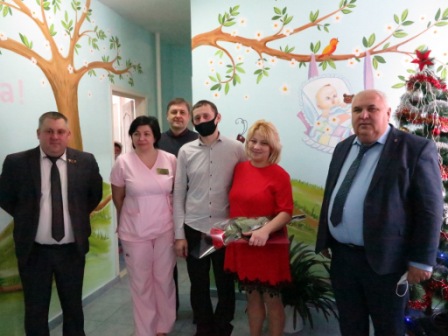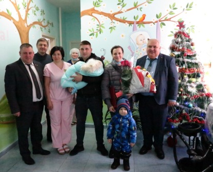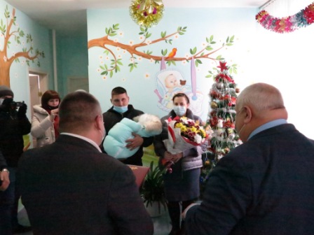 10 января в холле родильного отделения, где происходит выписка мамочек с детьми, супругов напутствовали главврач С.Н. Бурый и заведующая отделением Дегтярёва Лариса Олеговна, состоялась торжественная встреча первых лиц Новозыбковского городского округа А.В.Щипакина, главы округа, и П.В. Разумного, главы администрации, со счастливыми родителями, "