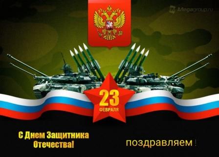 23 февраля в истории нашей страны – это особенный день, когда все мы, по сложившейся традиции, чествуем защитников Отечества, с благодарностью вспоминаем ратные подвиги во славу родной земли, отдаем дань уважения воинам и ветеранам."