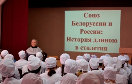 Союз Белоруссии и России: История длиною в столетия» - лекцию с презентацией на актуальную сейчас тему и в связи с приближающимся Днем единения народов России и Белоруссии 28 марта прочитала для студентов новозыбковского медицинского колледжа библиотекарь Афонина Н.М.