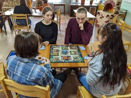 3 апреля клуб настольных игр «Игротека в библиотеке» собрал на мероприятие как опытных игроков, так и новичков, желающих окунуться в мир стратегии и фантазий. Старожилы увлеченно делились опытом, рассказывая правила и подсказывая верный ход. Новички сначала смущенно, а затем уже более уверенно принимали участие в «Острове страха», «Фонариках», «Кодовом имени», «Cluedo» и, конечно же, во всем полюбившемся Uno, но уже на новый лад – игре «БезUмно». Игра прошла динамично и очень дружно, несмотря на то, что, как и во многих играх, всегда есть победители и побежденные. С нетерпением ждем следующего воскресенья, чтобы зарядиться энергией и позитивом на предстоящую неделю!