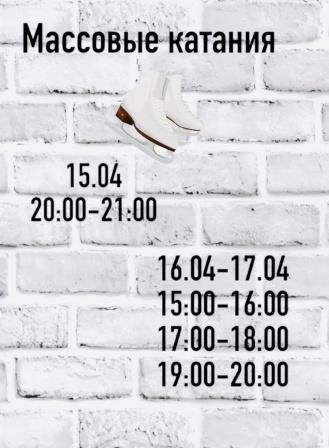 Массовые катания в ФОК "ЛЕДОВЫЙ ДВОРЕЦ" продолжаются и в апреле.