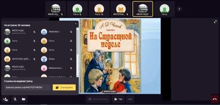 20 апреля в рамках проекта Центральной библиотеки «Долгоруковка онлайн» на платформе Яндекс Телемост для жителей и гостей города прошёл литературный час «Жанр пасхального рассказа».