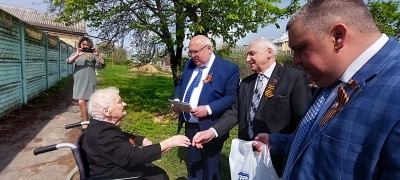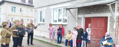 Цикл праздничных мероприятий 8 мая завершился в Новозыбковском городском округе ещё одним, важным и приятным. Руководители, А.В. Щипакин, П.В. Разумный, депутат облдумы Н.К. Стародубцев, работники администрации в сопровождении местных артистов отправились поздравлять ветеранов Великой Отечественной войны, а их в нашем округе проживает 10 человек. Всем были вручены открытки от Губернатора и местного руководства, подарки, а музыкальные номера: любимые песни «Катюша», «Синий платочек», «День Победы», – исполнялись работниками Отдела культуры прямо возле дома виновников торжества. Праздновать, так праздновать!