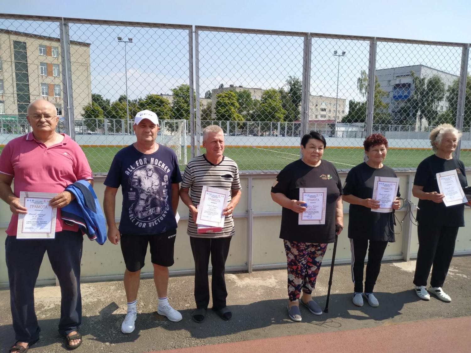 Спартакиада для земляков пенсионного возраста состоялась 11 августа. Члены местного отделения ОО "Пенсионеры России", активисты из Совета ветеранов, ветераны спорта и просто деятельные и энергичные люди приняли участие в этом празднике жизни, здоровья и долголетия. Даже погода не подвела: тучи разошлись и "разулыбалось" солнышко, осветив место проведения состязаний. А дальше – гимн, ободряющая песня и напутствие. Активных пенсионеров приветствовали замглавы администрации Ю.В. Пушная и председатель Совета ветеранов спорта Новозыбковского городского округа О.А. Копылов. Безусловно, желали удачи и успешного выступления. Конечно, говорили и о победе, но, как отметила Юлия Викторовна: "Пусть сегодня получат удовольствие и те, для которых главное, не победа, а участие!"."