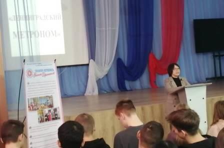 Популяризация знаний о содержании Дней воинской славы России является одним из направлений работы читального зала Центральной библиотеки имени князя Н.Д.Долгорукова. К 27 января, Дню полного освобождения Ленинграда от фашистской блокады, библиотекарем читального зала был разработан час-реквием «Бессмертие и сила Ленинграда». 16 января по запросу руководителей воспитательной работы Новозыбковского филиала БТЭ и Р, данное мероприятие состоялось в актовом зале учебного заведения для студентов 1-3 курсов. Сценарий мероприятия направлен на формирование у молодёжи осознания исторического прошлого, уважения к истории своей страны, чувства сострадания и гордости за стойкость своего народа в период блокады Ленинграда."
