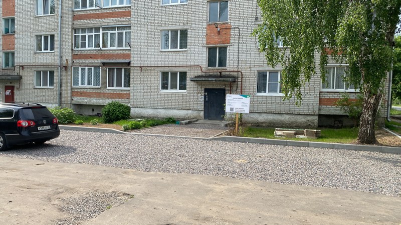 Работы начались в апреле 2025 года. В настоящий момент установлены бордюры, проведена подготовка территории под асфальтирование, предусмотрены парковочные места. Также будут установлены лавочки у подъездов, урны. Обновлено освещение двора. Планируется завершить работы в июле 2025 года.