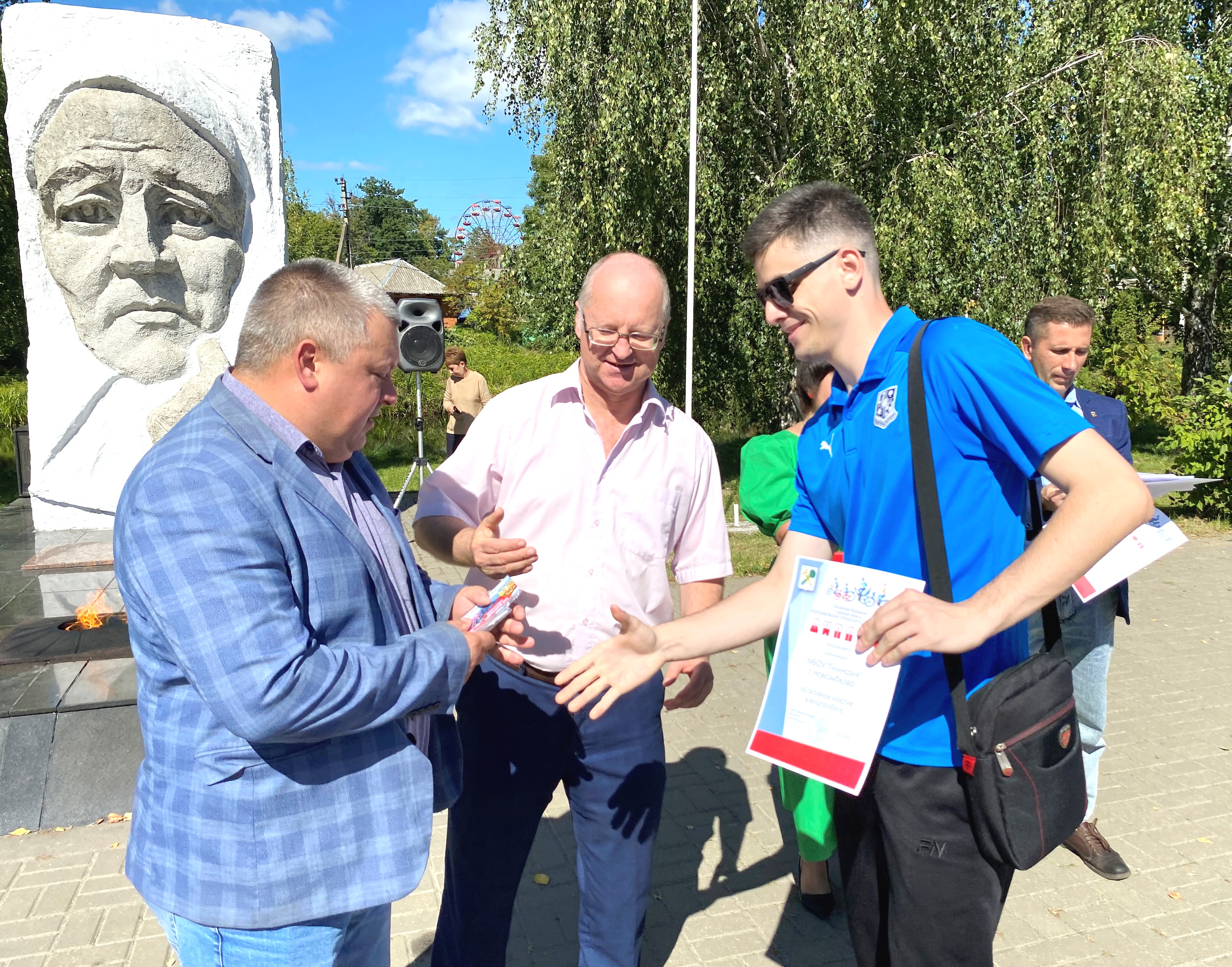 А глава администрации А.В. Юрлов поздравил велосипедистов и пожелал всем крепкого здоровья, а также помнить победителей, участников Второй мировой войны и гордиться теми, кто сейчас продолжает ратные традиции в специальной военной операции. В память о победителях Второй мировой были к мемориалу возложены живые цветы.