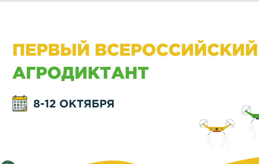 С 8 по 12 октября 2025 года пройдет Первый Всероссийский аграрный диктант, приуроченный ко Дню работника сельского хозяйства и перерабатывающей промышленности.