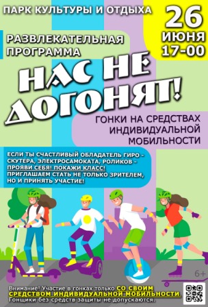 Если ты счастливый владелец гироскутера, электросамоката, роликов, скейта или другого средства индивидуальной мобильности, ТОГДА ТЫ С НАМИ! И можешь стать не только зрителем, но и участником уникальной развлекательной программы «Нас не догонят!»