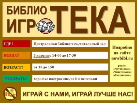 » БИБЛИОТЕКА ПРИГЛАШАЕТ В ИГРОТЕКУ