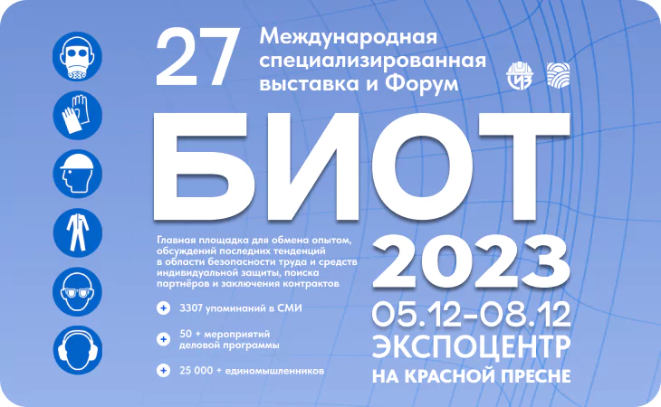 Минтруд России совместно с Ассоциацией разработчиков, изготовителей и поставщиков средств индивидуальной защиты предоставляют площадки для участия в экспозиции БИОТ-2023.